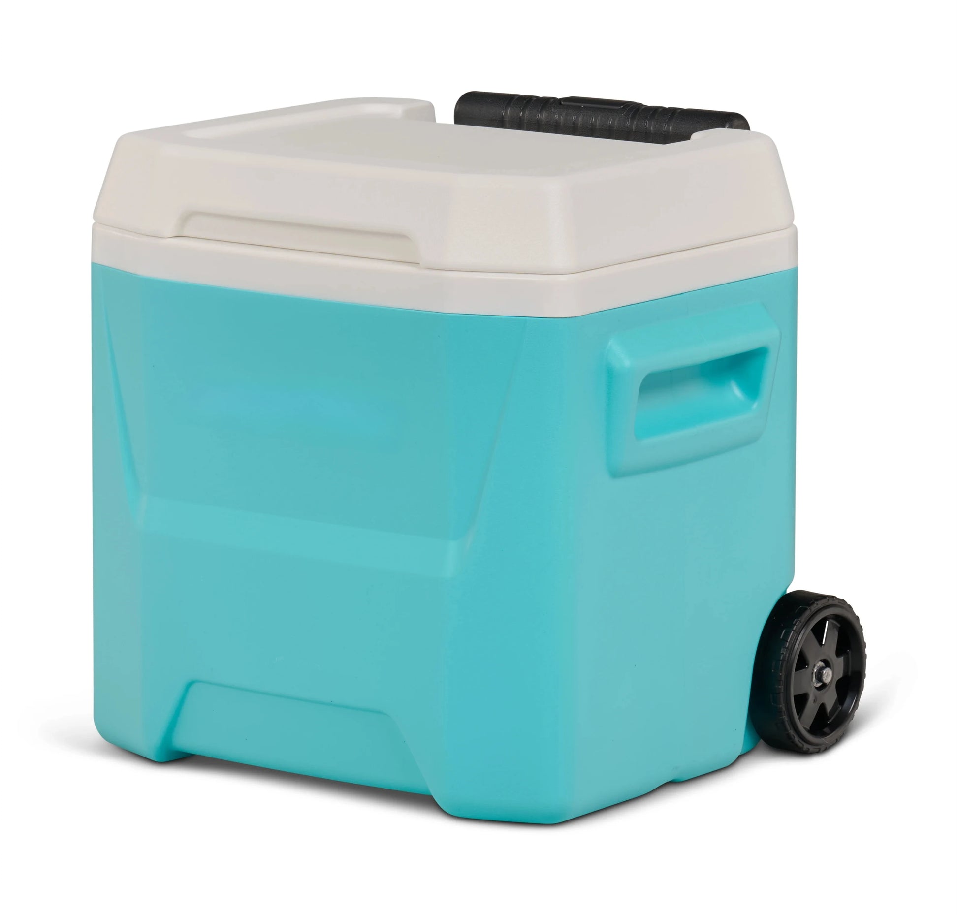 - 16-Quart Hard Sided Roller Cooler with Wheels - Blue.