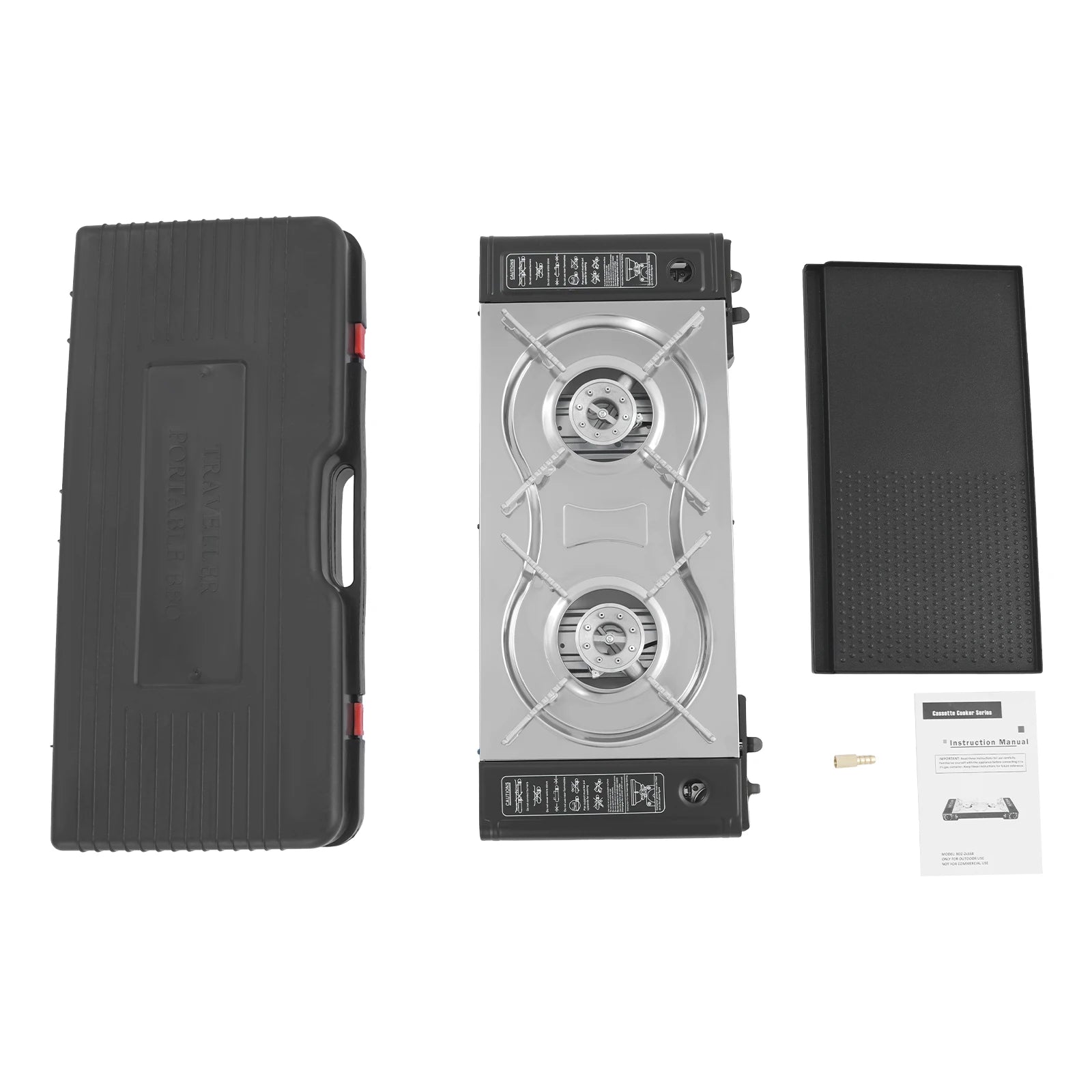 2-Burner Family Camping Gas Stove with Grill Pan|