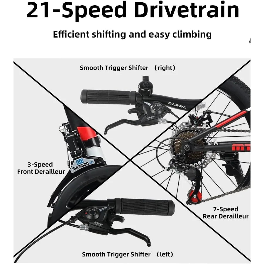 2024 24 Inch Bike for Boys and Girls Ages 6-14 21-Speed Mountain Bicycle with Front Suspension and Disc Brakes Ideal for Off-Ro