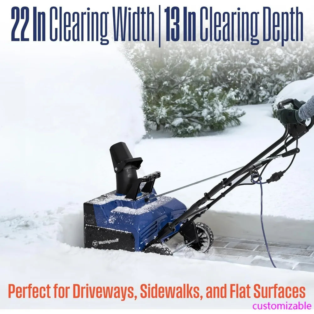 This product description highlights the features of the WSnow22 electric snow thrower: - Designed for versatility, it is suitable for snow removal in various areas such as driveways, sidewalks, walkways, porches, and decks, thanks to its rubber-tipped steel auger that ensures safe and efficient operation. - With a 120V 15A corded electric motor, it boasts the capability to throw 840 pounds of snow per minute, clearing a path that is 22 inches wide and 13 inches deep with each pass, making it an ideal choice for long driveways. - The snow thrower is lightweight and easy to maneuver, yet powerful enough to handle snow effectively. It comes equipped with 7-inch snow grabbing wheels, a soft grip handle, and an adjustable snow thrower chute that can be turned 180 degrees for precise snow direction. - For added convenience during winter nights, the snow thrower is equipped with dual LED headlights. - Each snow blower undergoes functional testing in the factory, and customers can enjoy peace of mind with a 2-year limited warranty and lifetime technical support, supported by a nationwide service network.