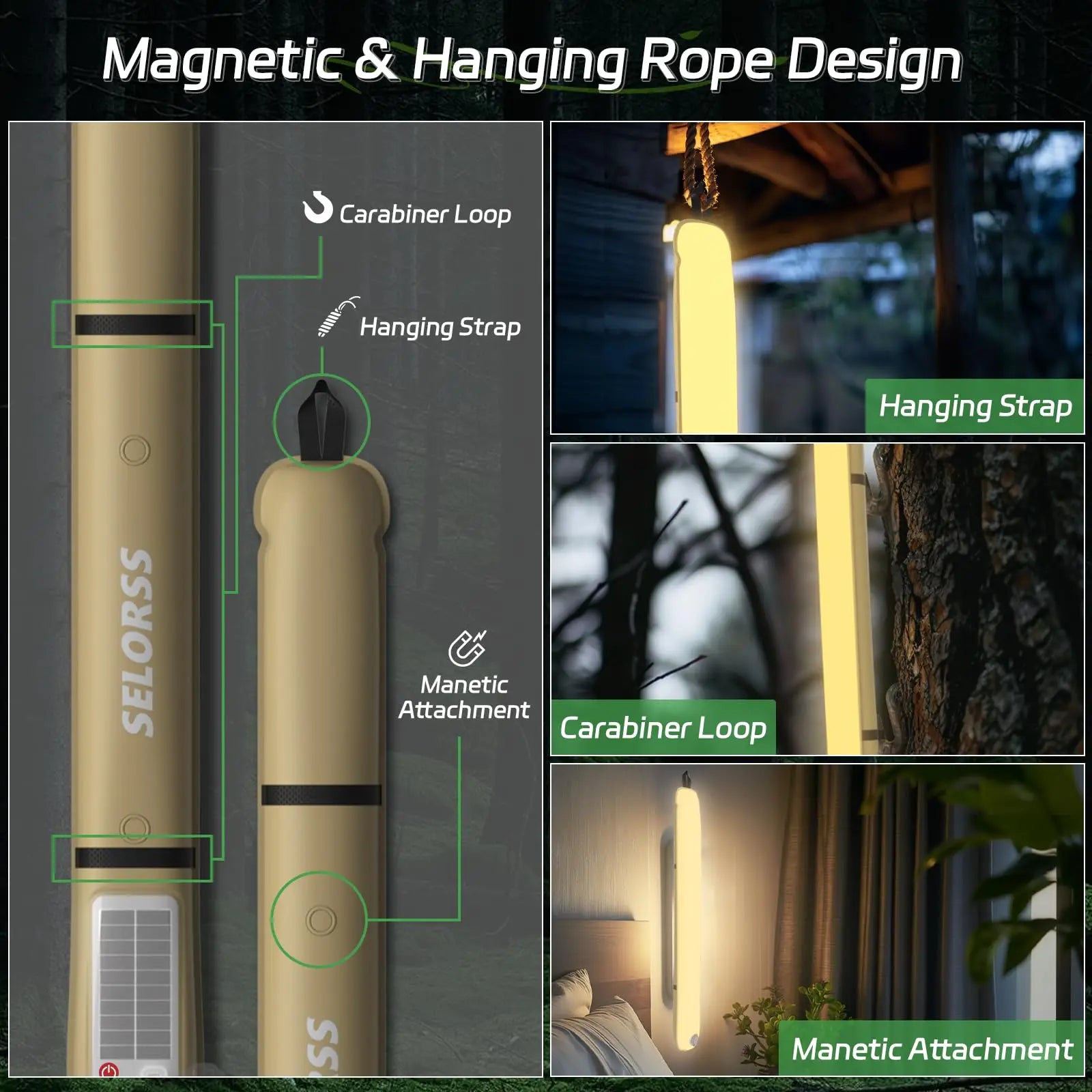 SELORSS Solar Camping Lantern 2000mAh,Folding Portable, Waterproof