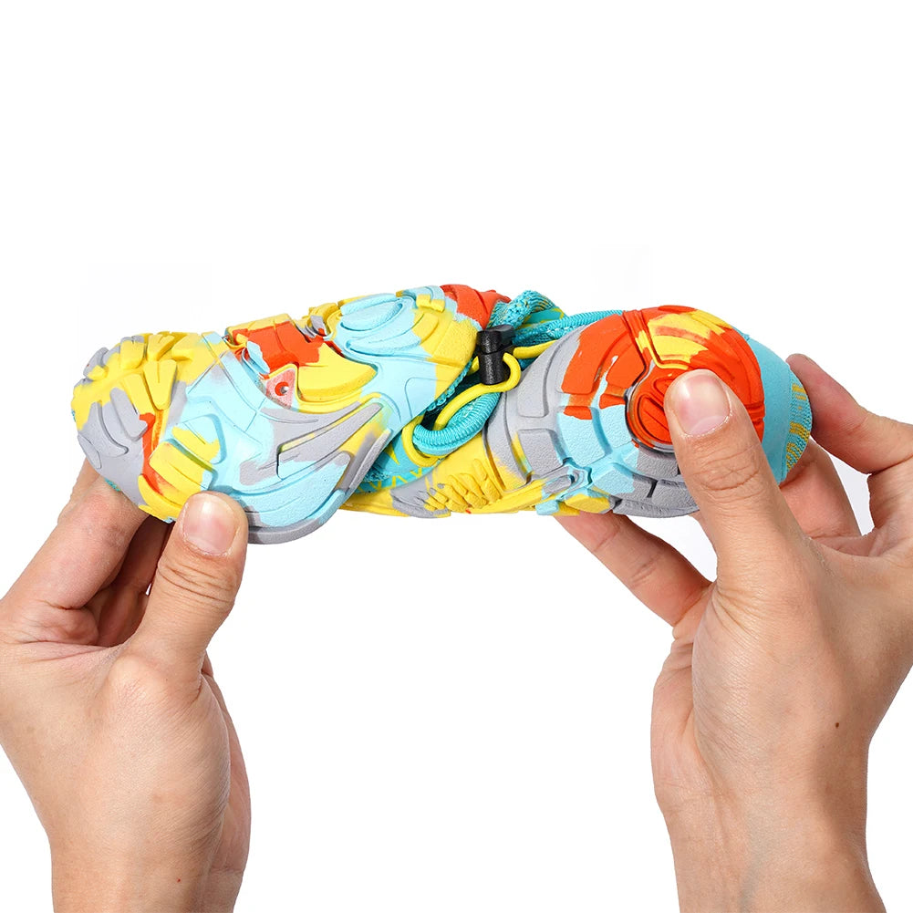 1. Enhanced Traction and Stability: The unisex water shoes' rubber sole with a textured tread pattern provides superior anti-slip performance and secure grip. This design ensures confident movement across various terrains, making these shoes ideal for outdoor activities like hiking, rock climbing, and beach adventures.